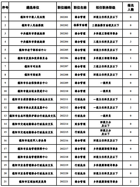 公選王遴選網(wǎng)為您整理了2022年四川德陽市市直部門遴選公務(wù)員報名人數(shù)統(tǒng)計(信息更新截至7月8日16:30)。