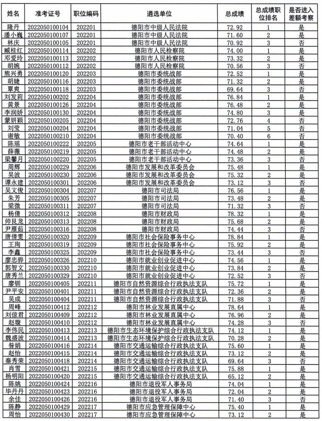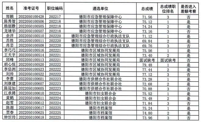 附件: 2022 年度德陽市市直部門公開遴選公務(wù)員總成績及差額考察對象名單