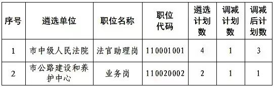 公選王遴選網(wǎng)訊 2022年吉安市市直單位公開遴選公務(wù)員報名工作已結(jié)束。根據(jù)《2022年吉安市市直單位公開遴選公務(wù)員公告》規(guī)定,現(xiàn)將未達到最低開考比例的職位調(diào)整和改報事項公告如下: