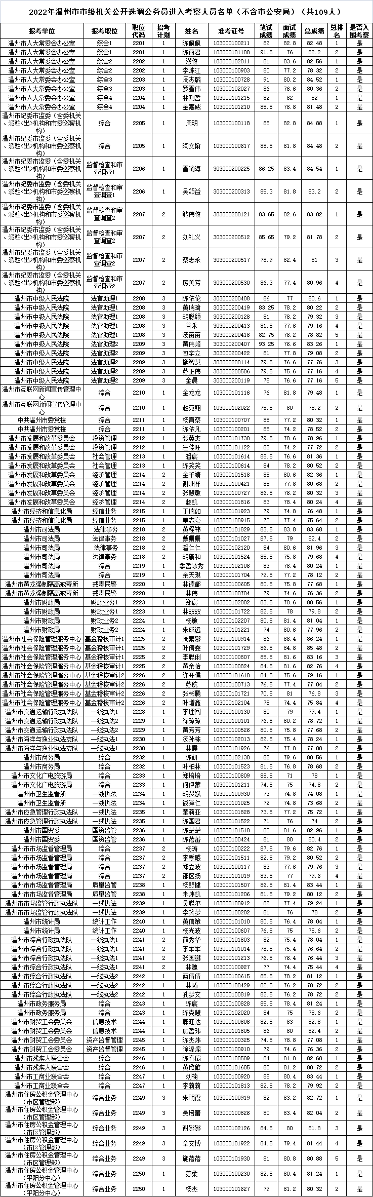 2022年溫州市市級(jí)機(jī)關(guān)公開(kāi)選調(diào)公務(wù)員進(jìn)入考察人員名單(不含市公安局)