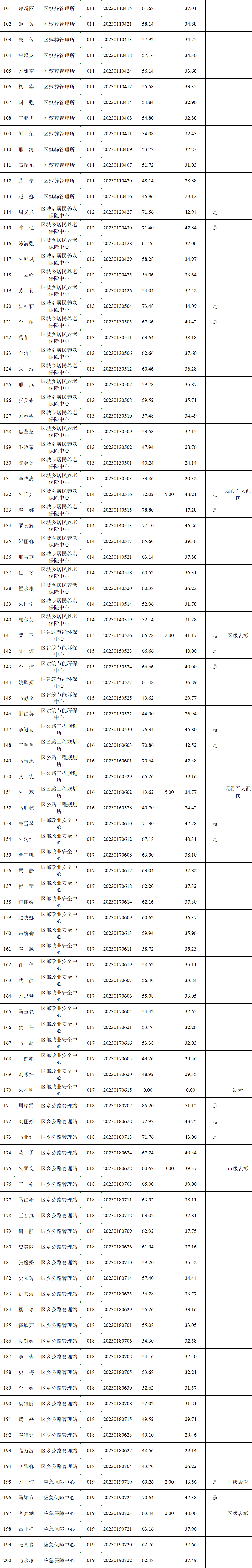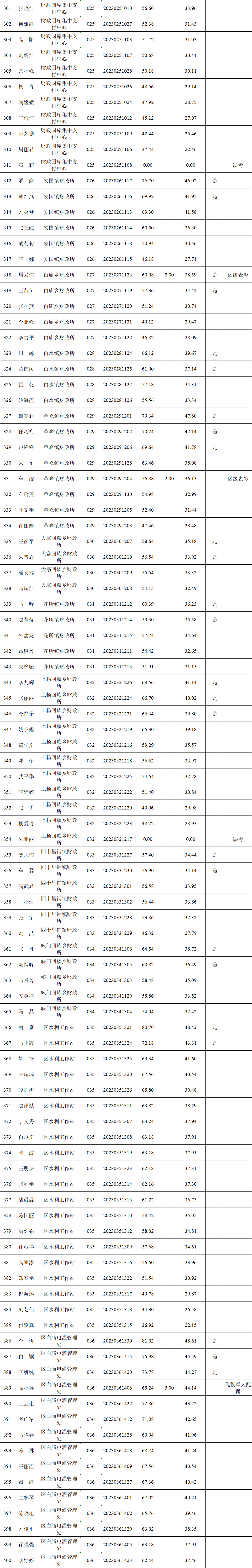 附件:2023年崆峒區(qū)區(qū)直部門(單位)公開選調(diào)工作人員筆試成績(jī)、加分項(xiàng)成績(jī)及進(jìn)入面試人員名單