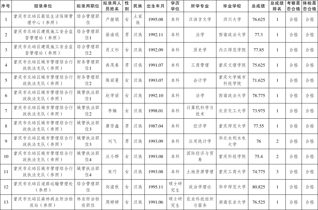 附件:北碚區(qū)2023年公開(kāi)遴選公務(wù)員擬錄用人員公示表(第一批)