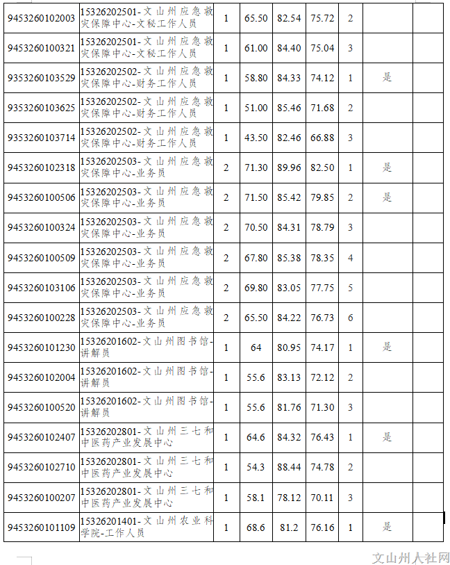 2023年文山州州屬事業(yè)單位公開選調(diào)工作人員面試成績(jī)和進(jìn)入下一環(huán)節(jié)人員名單(第六批)