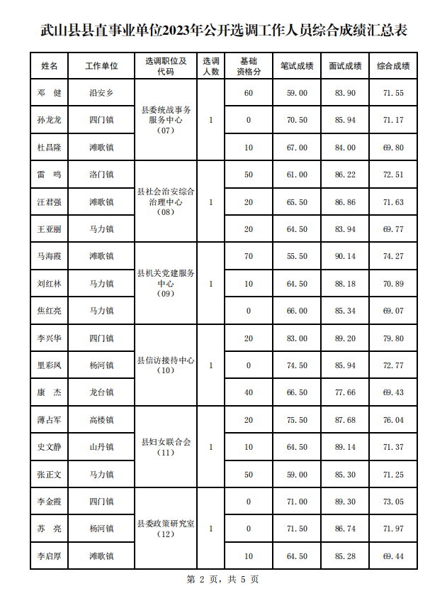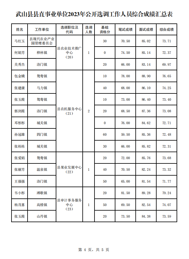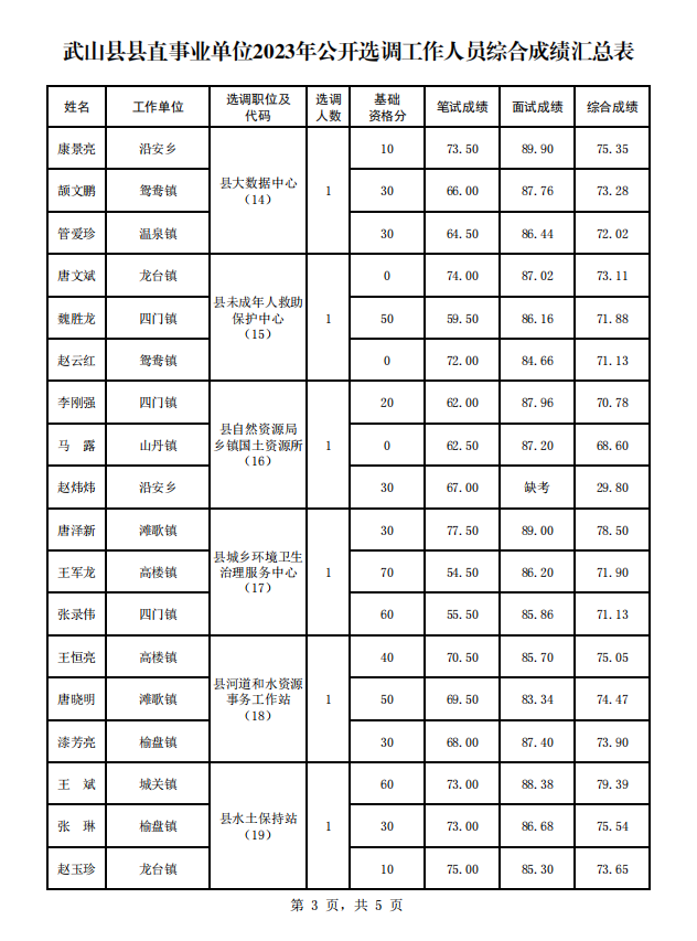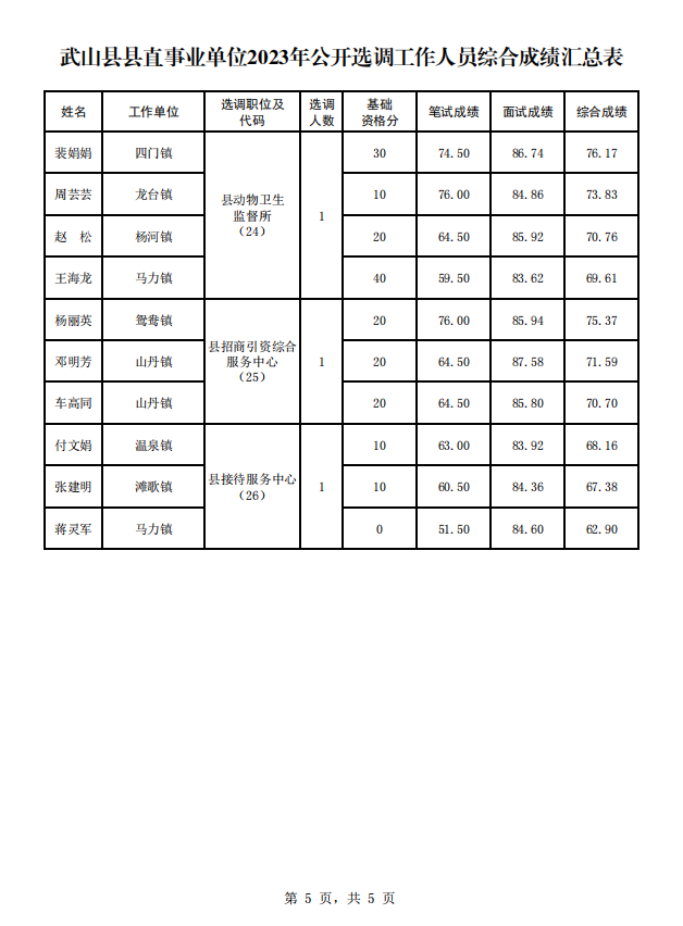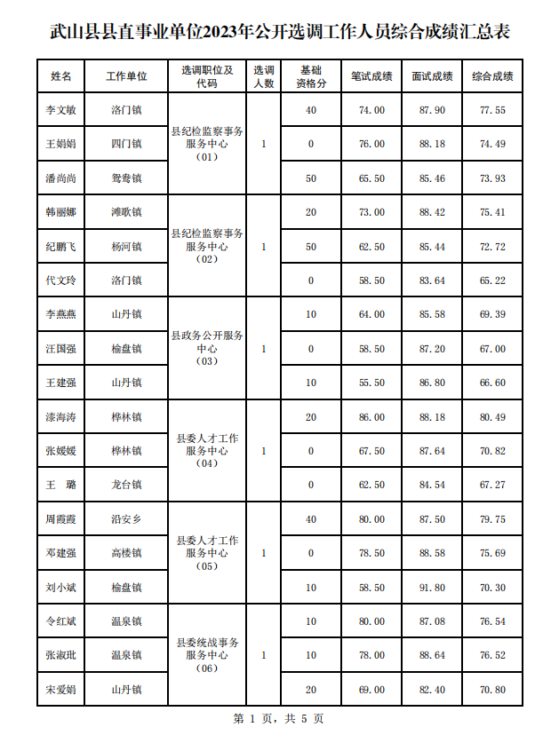 附件:1.武山縣縣直事業(yè)單位2023年公開(kāi)選調(diào)工作人員綜合成績(jī)匯總表