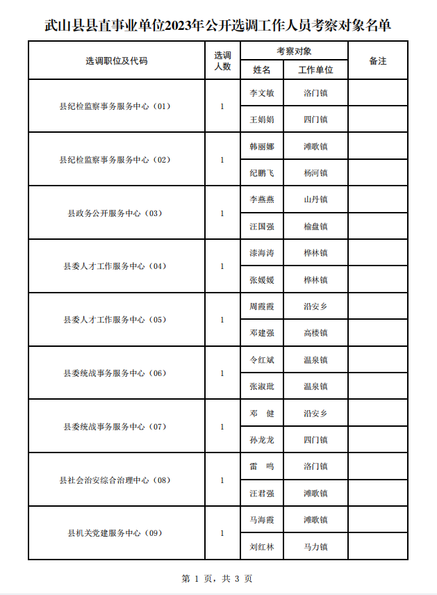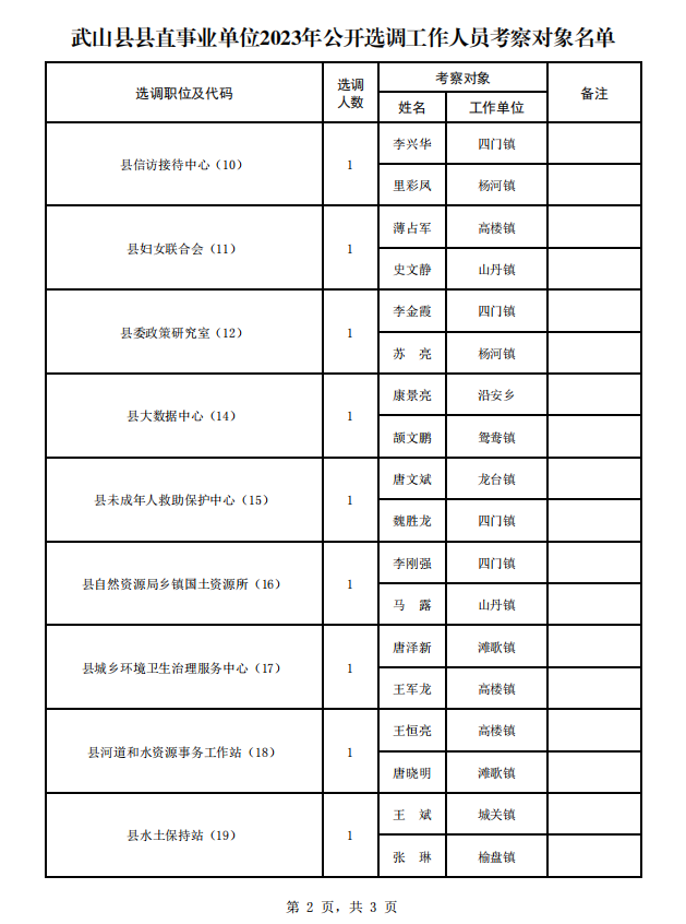 2.武山縣縣直事業(yè)單位2023年公開(kāi)選調(diào)工作人員考察對(duì)象名單