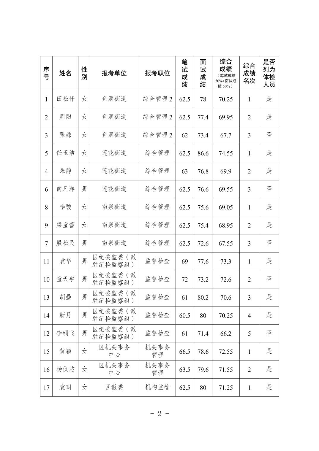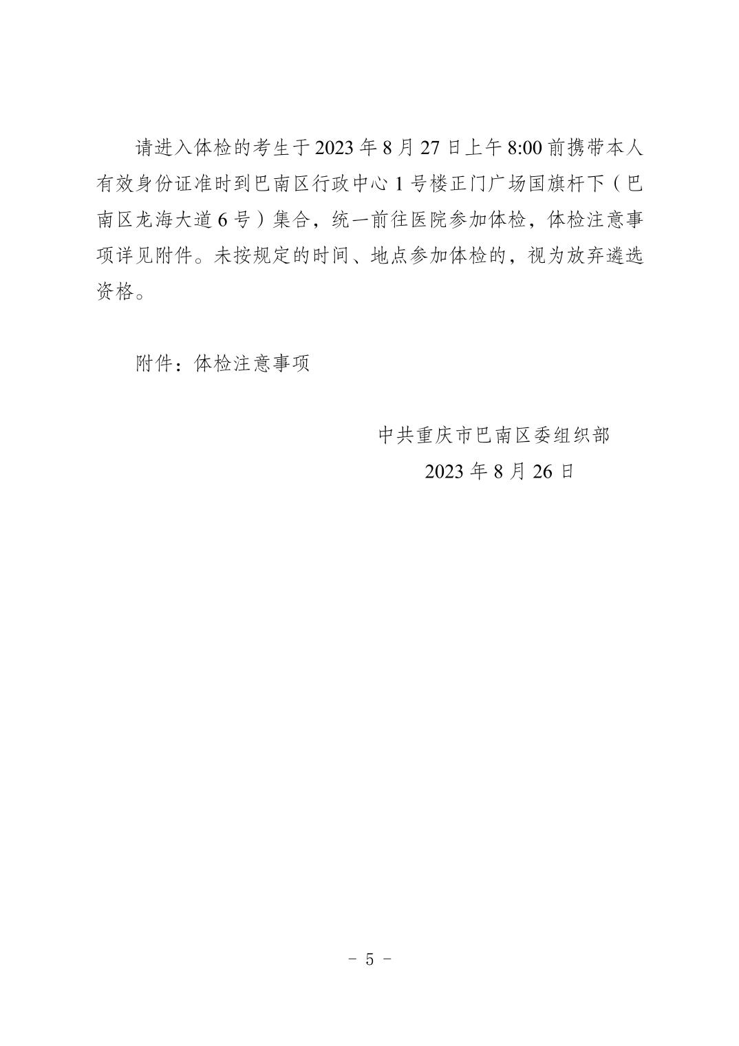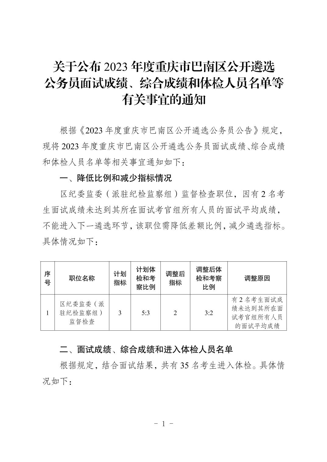 關(guān)于公布2023年度重慶市巴南區(qū)公開(kāi)遴選公務(wù)員面試成績(jī)、綜合成績(jī)和體檢人員名單等有關(guān)事宜的通知