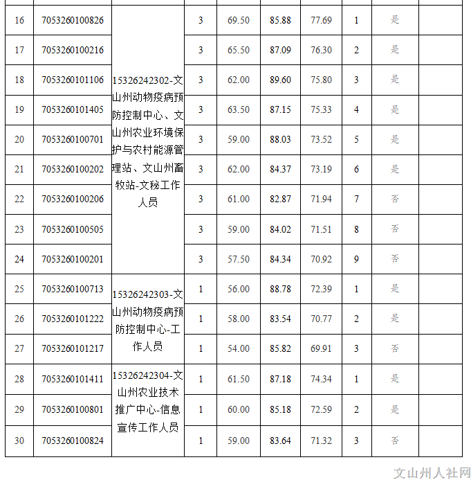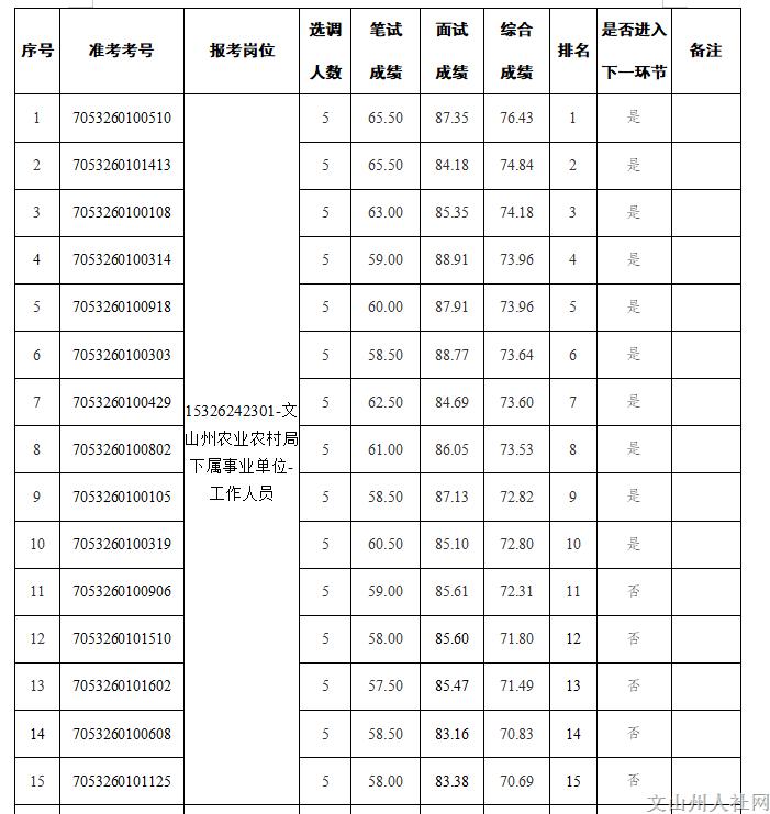 附件:2024年文山州農(nóng)業(yè)農(nóng)村局直屬事業(yè)單位公開選調(diào)工作人員面試成績和進入下一環(huán)節(jié)人員名單