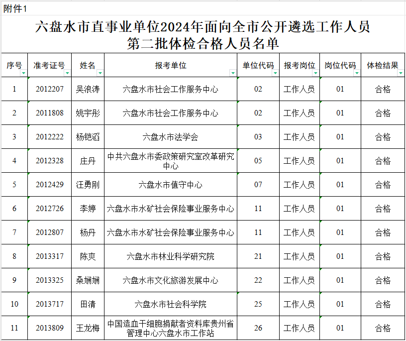 附件:1.六盤水市直事業(yè)單位2024年面向全市公開遴選工作人員第二批體檢合格人員名單