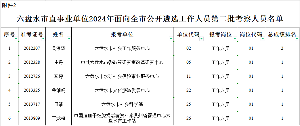 附件:2.六盤水市直事業(yè)單位2024年面向全市公開遴選工作人員第二批考察人員名單