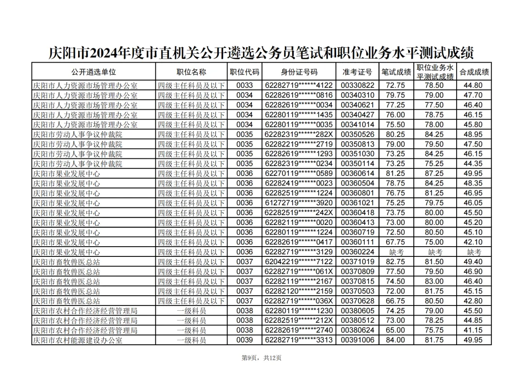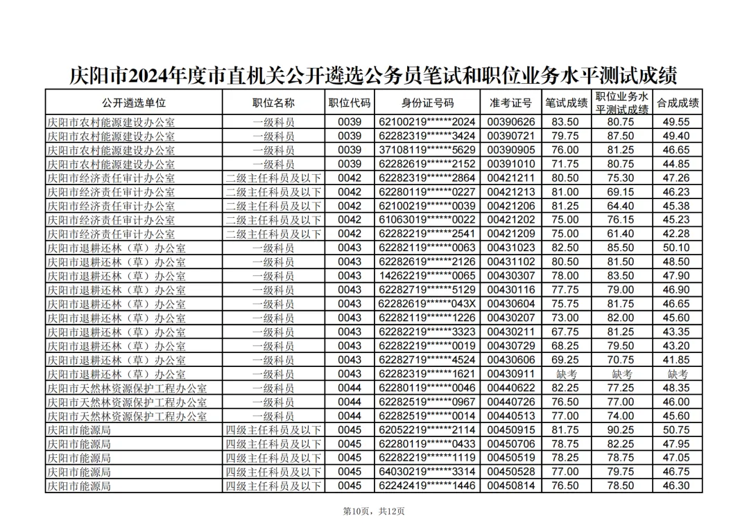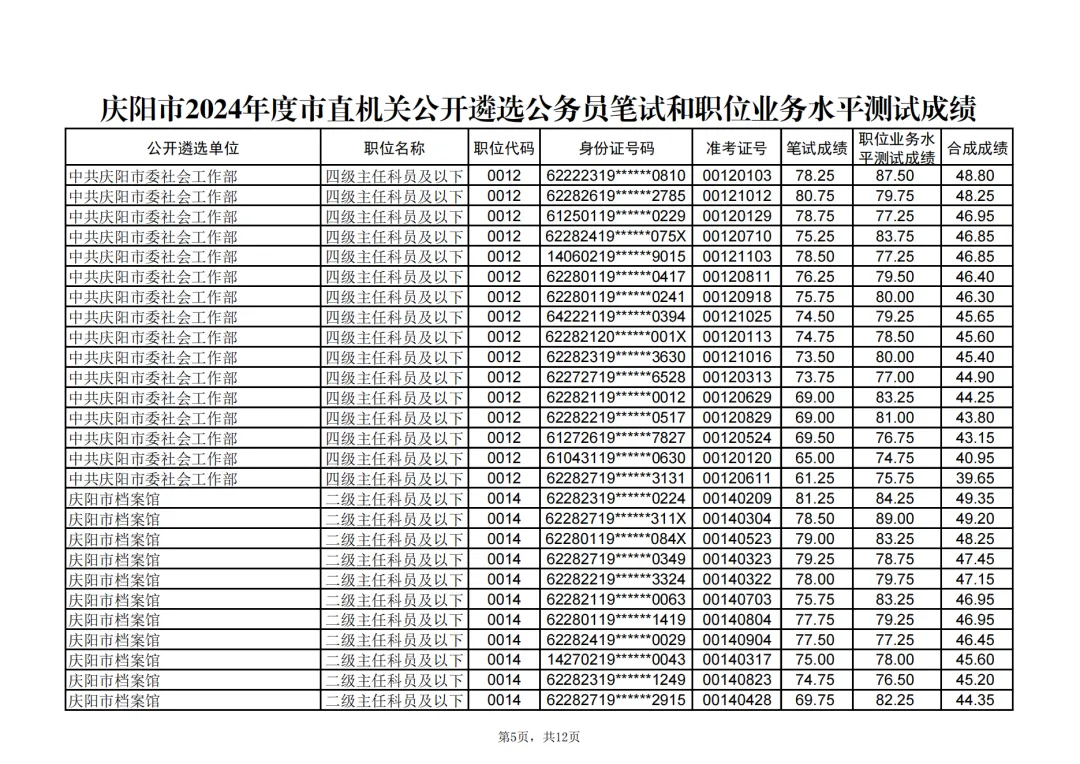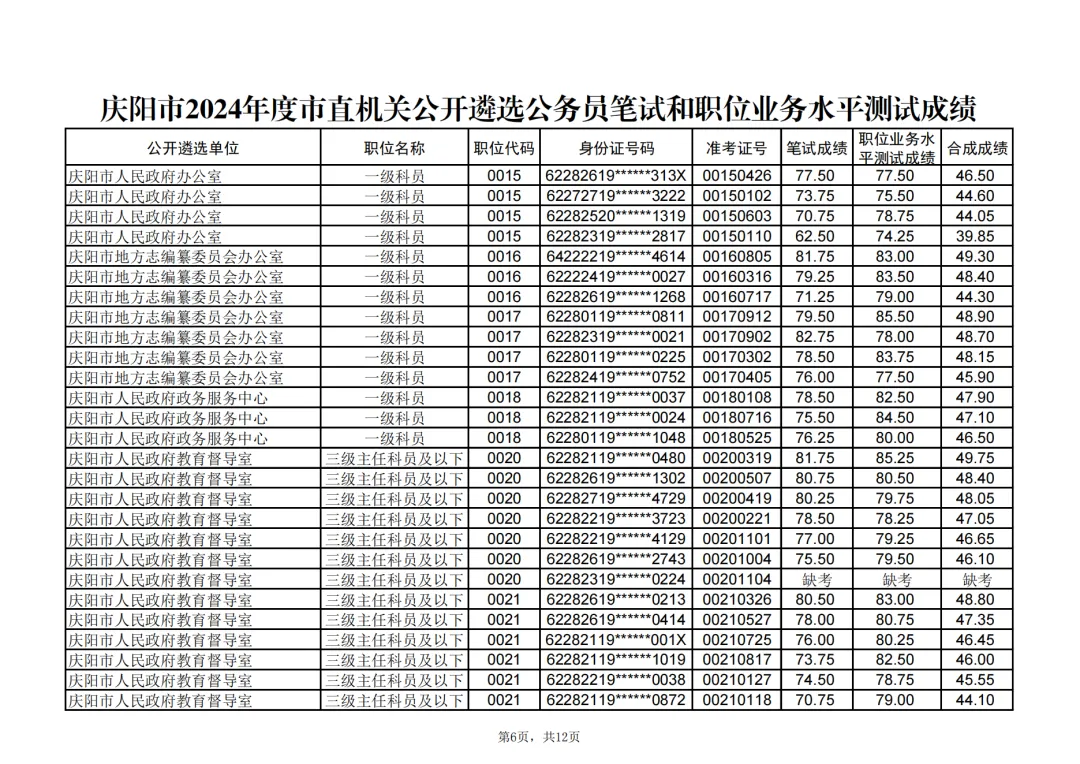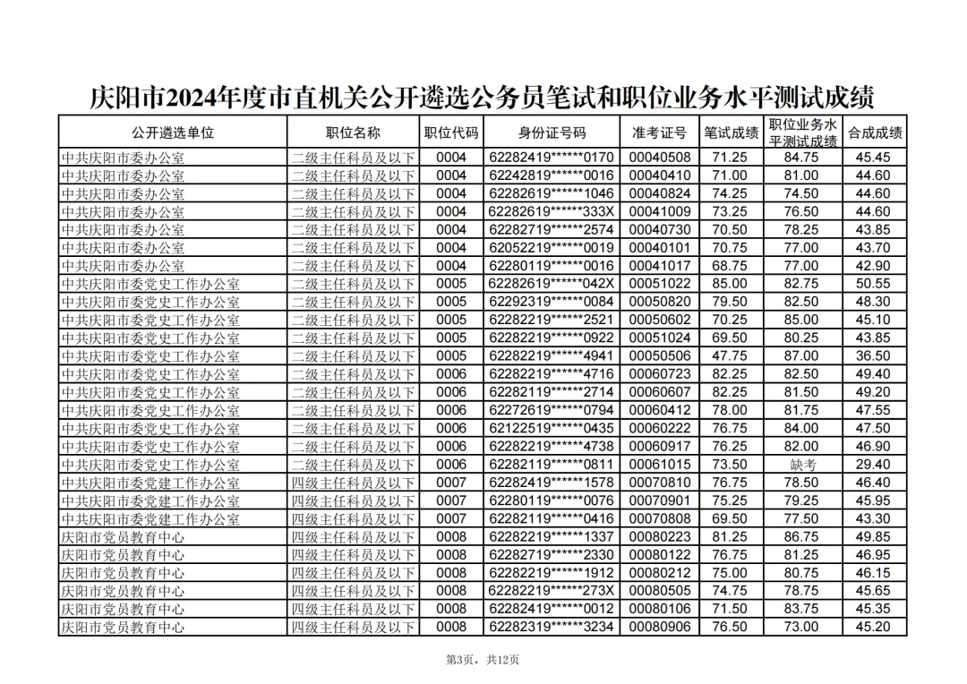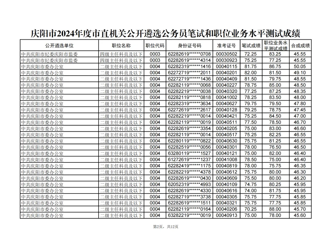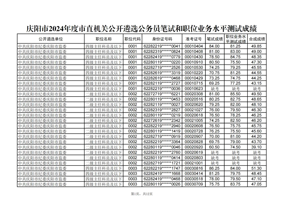 關(guān)于公布慶陽市2024年度市直機關(guān)公開遴選公務員筆試和職位業(yè)務水平測試成績的公告