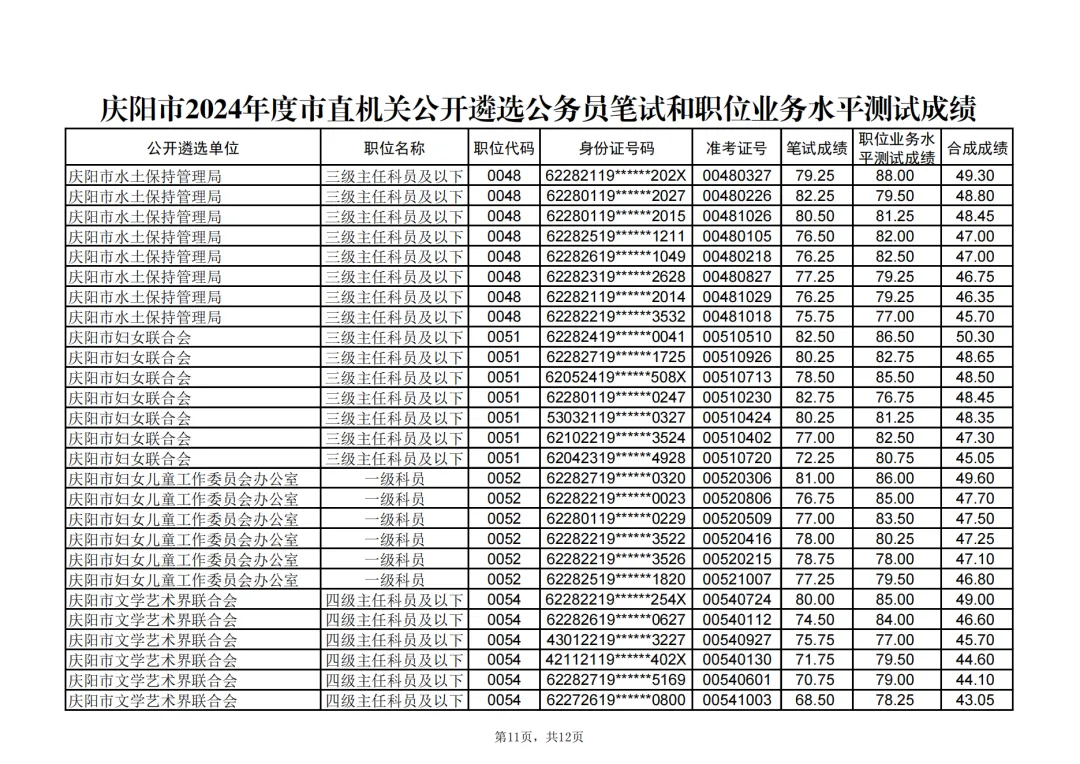 附:慶陽市2024年度市直機關(guān)公開遴選公務員筆試和職位業(yè)務水平測試成績