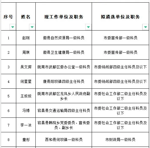 關(guān)于隴南市2024年度市直機(jī)關(guān)公開遴選工作人員擬遴選人員公示的公告