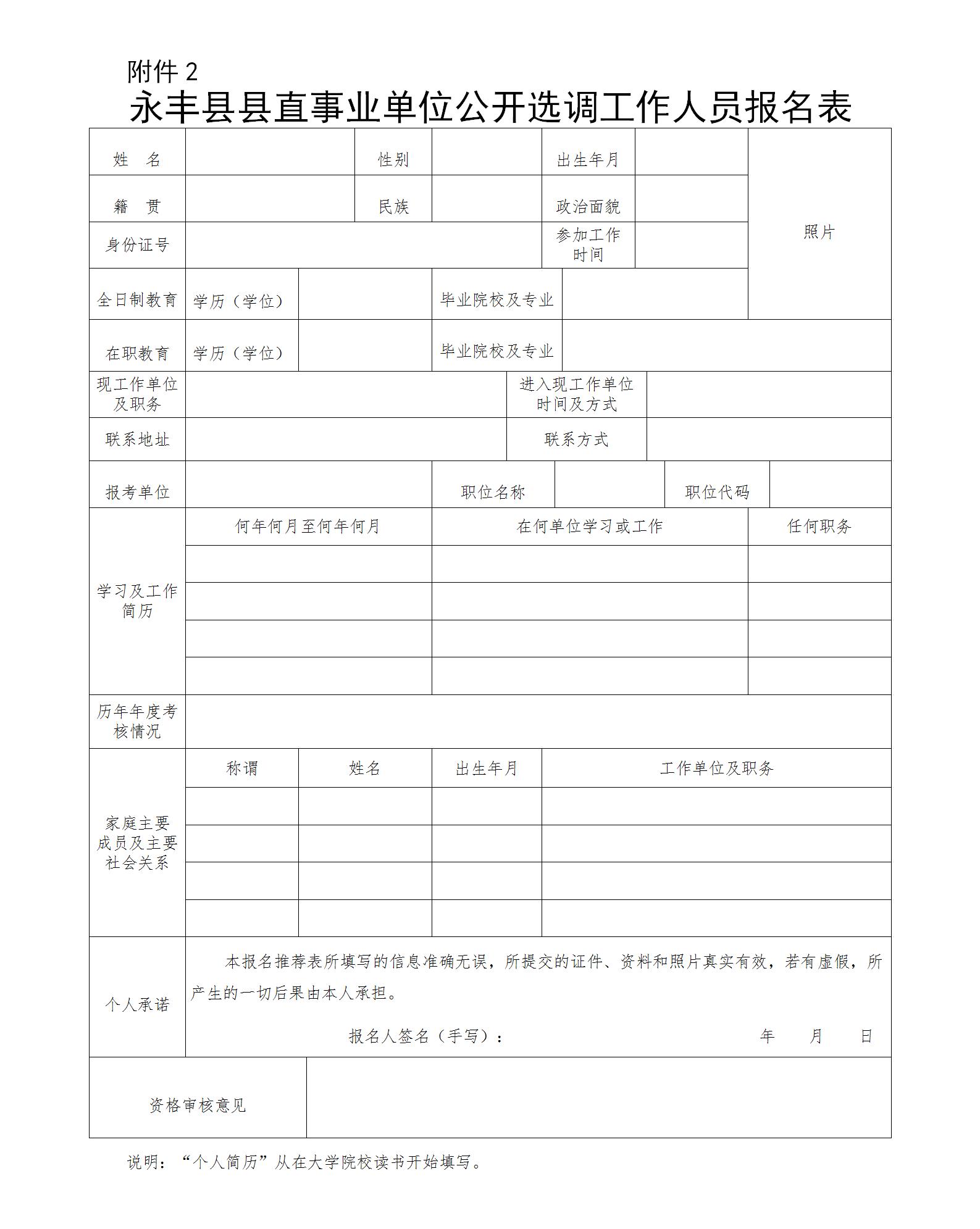 2.永豐縣縣直事業(yè)單位公開選調(diào)工作人員報(bào)名表