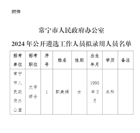 常寧市人民政府辦公室2024年公開遴選工作人員擬錄用人員公示公告