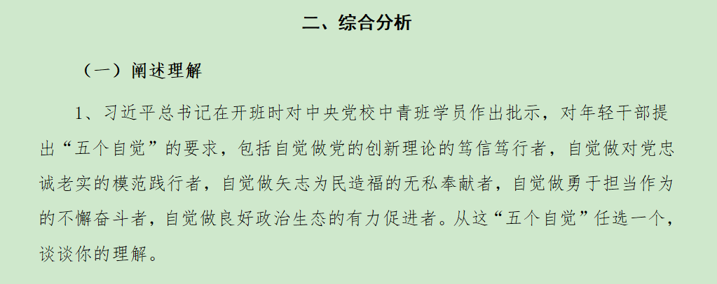1、習(xí)近平總書記對年輕干部提出“五個自覺”的要求,請你談?wù)勀贻p干部要如何做勇于擔(dān)當(dāng)作為的不懈奮斗者?(公選王精準(zhǔn)預(yù)測)