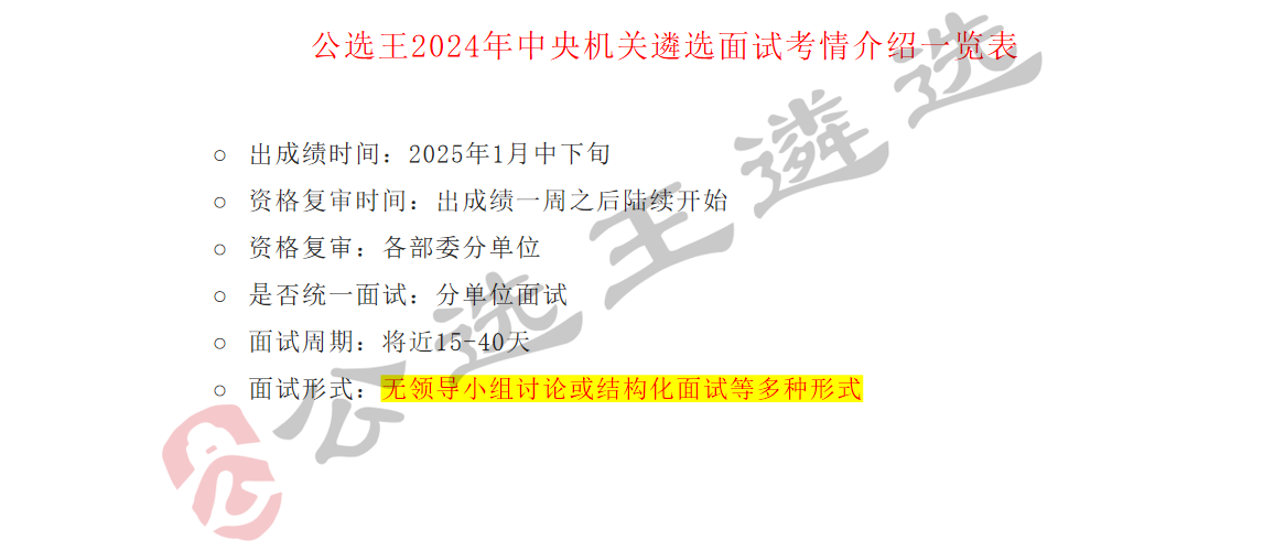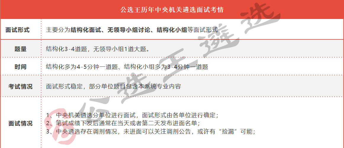 請看圖中總結(jié):中央機(jī)關(guān)遴選一般是分單位進(jìn)行面試、面試形式包括但不限于無領(lǐng)導(dǎo)小組討論、結(jié)構(gòu)化面試等????可參照查閱2024年面試情形:面試與資審匯總!2024年中央機(jī)關(guān)遴選和選調(diào)317名公務(wù)員面試和資格復(fù)審信息匯總(如下截圖所示)