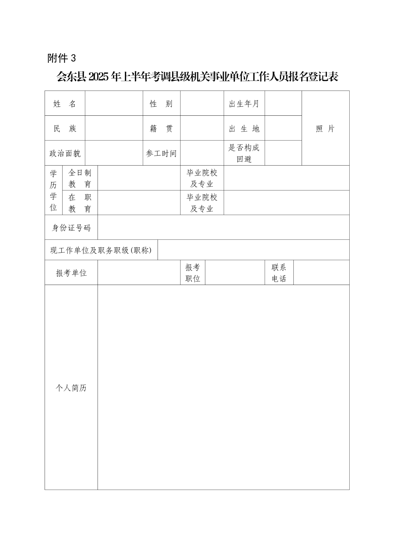 3 會東縣2025年上半年考調(diào)縣級機(jī)關(guān)事業(yè)單位工作人員報(bào)名登記表.doc